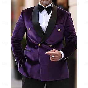 Herren Blazerjacke Schalkragen Mode Einfarbig Blazer Purpur Figurbetonter Schnitt Zweireihig mit vier Knöpfen