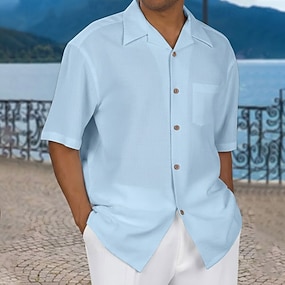 Herren Hemd Sommerhemd Freizeithemd Strandhemd Knopfhemd Blau Schwarz Weiß Rosa Grün Kurzarm Einfach Umlegekragen Täglich Urlaub Fronttasche Bekleidung Polyester Mode Lässig Bequem