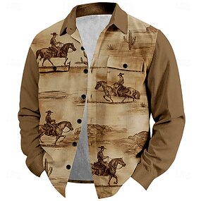 Herren Cowboy Cordhemd Hemdjacke Overshirt Langarm Vintage Western Outdoor Sport & Outdoor Alltagskleidung Herbst Winter Umlegekragen Hemden mit Kragen 3D-Druck Knöpfe 2 Taschen 1pc Armeegrün Blau