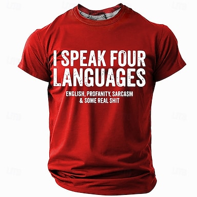 Herren Lustiges Grafik T-Shirt | Ich spreche vier Sprachen Englisch Schimpfwörter Sarkasmus ein bisschen echten Mist T-Shirt mit kurzen Ärmeln