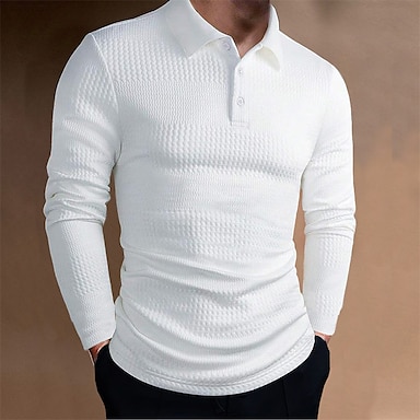 Herren Polo mit Knopfleiste Textur Lässig Sport Revers Langarm Mode Basic Einfach Texture Knöpfe Frühling & Herbst Normale Passform Blau Wein Schwarz Weiß Polo mit Knopfleiste