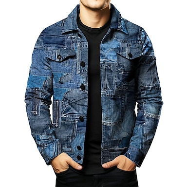 Herren Farbblock Hemd Hemdjacke Overshirt Langarm Vintage Outdoor Strasse Casual Herbst Winter Umlegekragen Knopf Tasche Bedruckt Dunkelmarine Blau