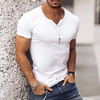 Herren T Shirt Kurze Ärmel V Ausschnitt Sommer Einfach Streetwear Stilvoll Moderner Stil Urlaub Ausgehen Alltagstauglich Schwarz Weiß Rosa Top T-Shirt für Herren