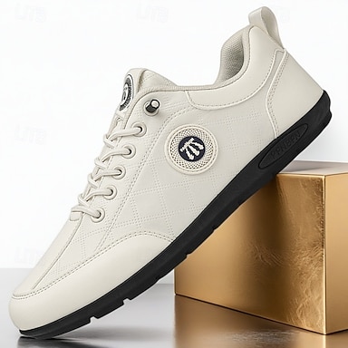 Weiße, spikelose Herren-Golfschuhe, atmungsaktives Obermaterial, griffige Sohle, minimalistischer Sportstil für Golfplatz und Freizeit