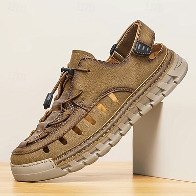 Beige Herren-Fischersandalen mit geschlossener Zehenpartie, atmungsaktive Outdoor-Schuhe, leichte und bequeme Sommerschuhe für Outdoor-Resorts, Urlaubsreisen, tropische Freizeitaktivitäten und Aktivitäten bei warmem Wetter.