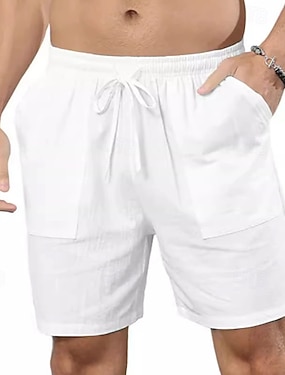 Herren Shorts Kurze Hosen Leinenshorts Kurze Hosen Sommer-Shorts Strandshorts Kurze Hosen Kordelzug Elastische Taille Vordertasche Glatt Komfort Atmungsaktiv Knielänge Outdoor Täglich Festtage