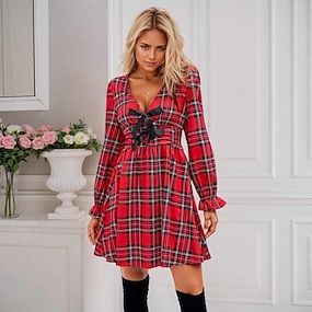 Retro Vintage 1950er A-Linien-Kleid Swing-Kleid Karomuster Kostüm Damen Festkleidung Neujahr Retro-Mottoparty Abendkleidung Erwachsene Kleid