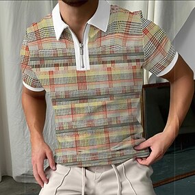 Herren Grafik Poloshirts mit Reißverschluss Kurzarm Polo-Shirts Hemden mit Kragen Lässig Athleisure Alltagskleidung 3D-Druck Sommer Gelb Rote Grau