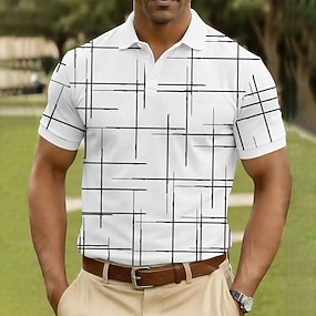 Herren Geometrisch Linie Poloshirts Kurzarm Polo-Shirts Hemden mit Kragen Lässig Athleisure Knöpfe Sommer Frühling Blau Weiß Braun