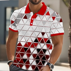 Herren Geometrisch Poloshirts Kurzarm Polo-Shirts Hemden mit Kragen Lässig Athleisure Knöpfe Atmungsaktives Gewebe Frühling & Sommer Blau Rote Purpur