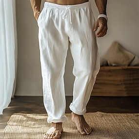 Herren Leinenhosen Einfarbig Atmungsaktiv Volle Länge Formell Hochzeit Outdoor Elegant Urlaub Schwarz Weiß Mikroelastisch