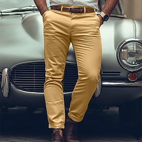 Herren Hose Chinos Einfarbig Volle Länge Formell Hochzeit Outdoor Elegant Urlaub Schwarz Leicht Braun Mikroelastisch
