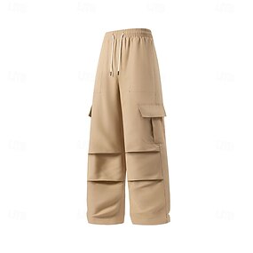 Herren Cargohose Freizeithose Kordelzug Tasche Einfach Komfort Bequem Volle Länge Täglich Heim Outdoor Urlaub Einfach Schwarz Khaki Mikroelastisch