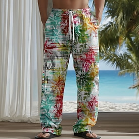 Herren Kokospalme Natur & Landschaft Tropische Pflanzen Hose Freizeithose Baggy-Hosen Mittlere Taille Hawaiianisch Outdoor Urlaub Strandbekleidung Elastischer Kordelzug in der Taille Leinenähnliche