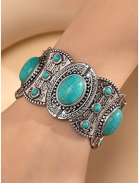 Türkisfarbenes Vintage-Schmuckset für Damen – Halskette, Ohrringe und Armband aus Silber im Bohème-Stil, Statement-Accessoires im Western-Cowgirl-Stil für Partys und Festivals