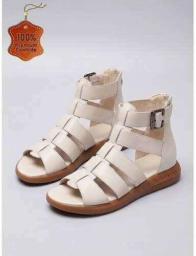 Beige Gladiator-Sandalen für Damen – stylische Ledersandalen mit mehreren Riemen, lässige Schuhe für Reisen und Sommeroutfits &Alltagskleidung