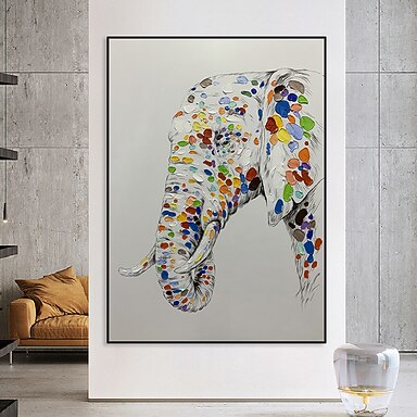 Ölgemälde handgemachte handbemalte Wandkunst abstrakte Tierfarbene Elefanten Home Dekoration Dekor gestreckter Rahmen fertig zum Aufhängen
