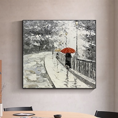 handgefertigtes Ölgemälde auf Leinwand, Wandkunst, Dekoration, Figur, abstrakte Regenstraßenlandschaft für die Inneneinrichtung, gerolltes, rahmenloses, ungedehntes Gemälde