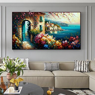 Ölgemälde, handgefertigt, handbemalt, Wandkunst, abstraktes Messergemälde, Landschaft, Strand, Heimdekoration, Dekor, gerollte Leinwand, kein Rahmen, ungedehnt