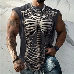 Ärmelloses Herren-T-Shirt mit 3D-Skelett-Rippen-Grafik, Allover-Print, anatomischem Knochenmotiv, Muskelshirt, Halloween-Punk-Streetwear, Designer-Kleidung, Größen: S, M, L, XL, XXL, XXXL