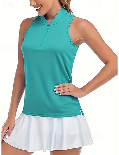 Damen Einfarbig Workout-Tanktop Sporthemd Panzer Tank Top Ärmellos Reißverschluss Tennis Golfspiel Pickleball Reißverschlusskragen Tank-Rückseite Grün Tennisbekleidung