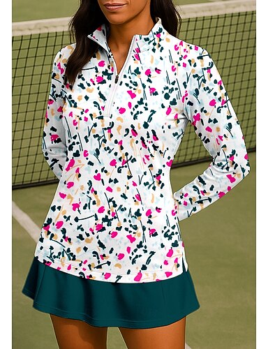 Damen Geometrisch Farbverlauf Sweatshirt Shirt Sporthemd Golf-Poloshirt Langarm Reißverschluss Blumen UPF50+ UV-beständig Hohe Elastizität Feuchtigkeitsableitend Atmungsaktiv Tennis Golfspiel