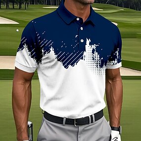Herren Geometrisch Golf Sport-Poloshirts Kurzarm Polo-Shirts Hemden mit Kragen Lässig Athleisure Knöpfe Sommer Frühling Blau Weiß Grün