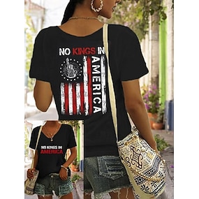 Amerikanischer Unabhängigkeitstag Damen T Shirt T-Shirt Druck Grafik Stilvoll Klassisch Lässig Kurzarm V Ausschnitt Normale Oberteile Täglich Ausgehen Wochenende Blau Schwarz Weiß Wein Grün Sommer