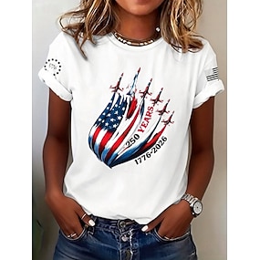 Amerikanischer Unabhängigkeitstag Damen T Shirt T-Shirt Druck Grafik Flagge Stilvoll Klassisch Lässig Kurzarm Rundhalsausschnitt Normale Oberteile Täglich Ausgehen Wochenende Weiß Sommer Frühling
