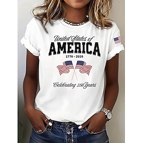 Amerikanischer Unabhängigkeitstag Damen T Shirt Druck Grafik Buchstabe Amerikanische Flagge Stilvoll Klassisch Lässig Kurzarm Rundhalsausschnitt Normale Oberteile Täglich Blau Schwarz Weiß Rote