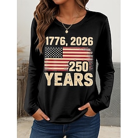 Amerikanischer Unabhängigkeitstag Damen T Shirt Druck Grafik Flagge Vintage Mode Stilvoll Langarm Rundhalsausschnitt Rundhals Normale Oberteile Täglich Wochenende Blau Schwarz Rote Frühling Herbst