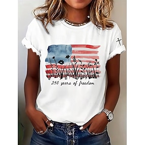 Amerikanischer Unabhängigkeitstag Damen T Shirt T-Shirt Druck Grafik Stilvoll Klassisch Lässig Kurzarm Rundhalsausschnitt Normale Oberteile Täglich Ausgehen Wochenende Blau Schwarz Weiß Rote Grün
