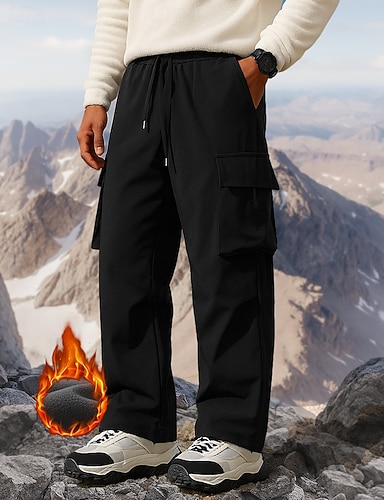 Herren Cargohosen Wanderhosen Thermohosen Winter Herbst Außen Normale Passform Thermowarm Unterteile Tasche Elastischer Bund Schwarz Armeegrün Camping / Wandern Laufen S M L XL XXL