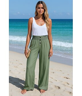 Damen Kunstbaumwollleinen Weite Hosenbeine Chinos Sommerhose Mode Streetwear Volle Länge Hohe Taille Einfach Tasche Elastischer Bund Bequem Weich Mikroelastisch Outdoor Straße Rosa Armeegrün Sommer