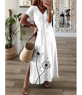 Damen Maxikleid Sommerkleid A Linie Kleid Urlaub Lässig Strand Party Ausgehen Normale Passform Blumen Grafik Kurzarm V Ausschnitt Hellrosa Weiß Rosa Frühling Herbst