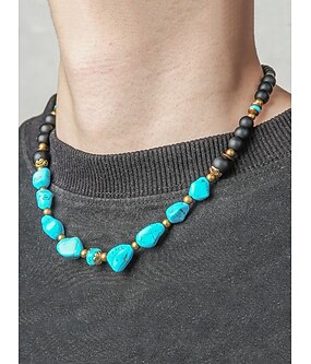 handgefertigte Halskette aus Natursteinperlen für Männer – Vintage-Choker aus Türkis und schwarzem Achat im Boho-Stil, Stammesschmuck für Strand, Reisen und Freizeit