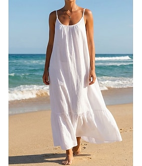 Damen Midikleid 100% Baumwolle Shiftkleid Sommerkleid Unterkleid Mode Modern Täglich Outdoor Urlaub Lässiger Schnitt Einfach Ärmellos Träger Schwarz Weiß Purpur Leicht Blau Sommer Frühling