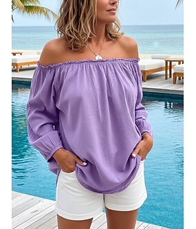 Damen Hemd Baumwoll-Leinen-Hemden Leinenhemd Strandhemd Rüsche Einfach Stilvoll Klassisch Modern Langarm Schulterfrei Normale Oberteile Täglich Ferien Strandbekleidung Blau Gelb Rosa Armeegrün Purpur