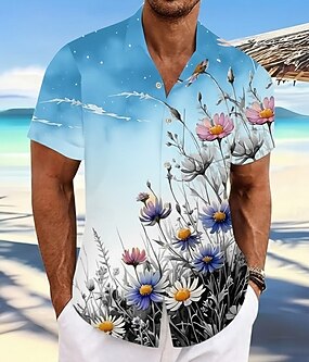 Herren Gänseblümchen Blumendruck Blumen Sommer Hawaiihemd Knopfhemd Alohahemd Kurzarm Hawaiianisch Lässig Urlaub Sommer Frühling Umlegekragen 3D-Druck Hemden mit Kragen Eine Tasche vorne Blau Schwarz