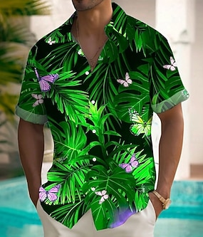 Herren Palmblatt Tropische Pflanzen Sommer Hawaiihemd Knopfhemd Alohahemd Kurzarm Hawaiianisch Urlaub Ferien Strandbekleidung Sommer Frühling Umlegekragen 3D-Druck Hemden mit Kragen Grün