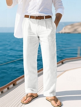 Herren Leinenhosen Hose Anzughose Sommerhose Baggy-Hosen Fronttasche Gerader Schnitt Einfach Komfort Atmungsaktiv Volle Länge Formell Geschäft Ferien Urlaub Mode Weiß Marineblau Unelastisch