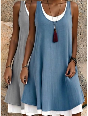 Mehrfachpackungen 2St Damen Rundhalsausschnitt Ärmellos Grün + grau Freizeitkleid Trägerkleid Sommerkleid Geschichtet Falscher Zweiteiler Einfach Lässig Täglich Polyester Sommer