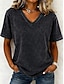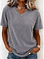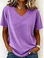 Damen Baumwoll Mischung Einfarbig Stilvoll Basic Kurzarm V Ausschnitt Normale Oberteile Lässig Sport Wochenende Schwarz Hellgrün Rosa Violett Hellgrau Sommer Frühling