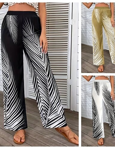 Damen Weites Bein Hosen Hose Freizeithose Urlaub Basic Lässig Volle Länge Mittlere Taillenlinie Grafik Geometrisches Muster Geschichtet Asymmetrisch Weich Bequem Unelastisch Täglich Outdoor Urlaub