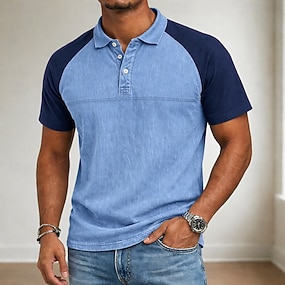 Herren Polo Poloshirts Lässig Straße Revers Kurzarm Basic Modern Farbblock Leicht Knöpfe Sommer Frühling Normale Passform Marineblau Dunkelgrau Polo