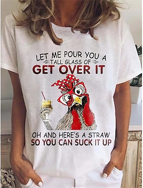 Damen T-Shirt Lässig Lustiger Spruch Rundhals Schwarz Weiß Kurzarm Buchstaben Druck Täglich Freizeit Bequeme Oberteile Normale Passform