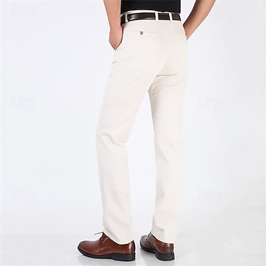 Herren Anzughosen Hose Hosen Faltenhose Tasche Gerade geschnitten Glatt Kein Eisen Knitterfrei Hochzeit B¨¹ro Arbeit Baumwollmischung Schick & Modern Ausgefallene Gelb Braun Hoher Taillenbund
