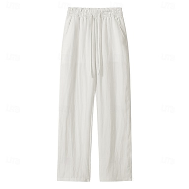 Herren Tencel Leinenhose Hose Sommerhose Strandhose Kordelzug Tasche Elastischer Bund Einfach Komfort Atmungsaktiv Volle Länge Täglich Outdoor Strand Urlaub Mode Schwarz Weiß Unelastisch