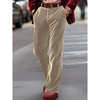 Herren Hose Einfarbig Volle Länge Formell Hochzeit Outdoor Elegant Urlaub Weiß Beige Mikroelastisch