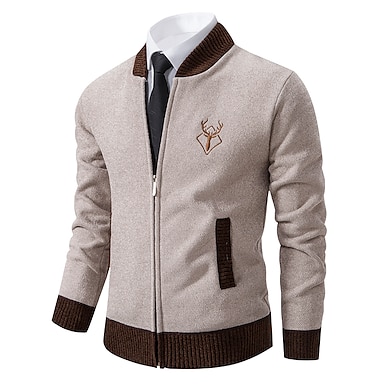 Herren Pullover Strickjacke Herren Pullover Gerippt Stricken Standard Strick Ständer Warm-Ups Moderne zeitgenössische Zurück zur Schule Freizeitskleidung Bekleidung Herbst Winter Schwarz Hell Gray S